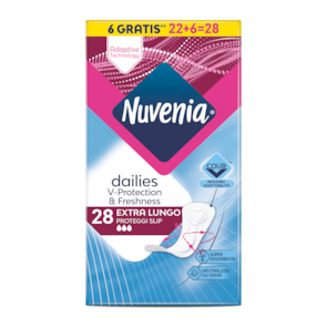 Abbiamo progettato Nuvenia Pure Sensitive™️ proteggi slip per le pelli più sensibili. La superficie liscia come la seta con 0% di allergeni** è delicata, fino a 0% di irritazioni*. Questo proteggi slip per pelli sensibili è l'ideale per la tua V-zone: ti mantiene fresca, sicura di te e comoda dovunque la tua giornata di porti. Ottieni delicatezza sulla pelle e massima flessibilità per una vestibilità perfetta. La nostra tecnologia Cour-V™️ si adatta alle tue curve per un maggiore comfort in ogni tuo movimento. Questi proteggi slip sono ginecologicamente testati e dermatologicamente approvati da Skin Helath Alliance. Vivi senza paura - e con un maggior comfort e sicurezza. *Basato su test clinici esterni in EU/Maggio 2023 con 98 soggetti. Il 99%non ha riportato reazioni cutanee.